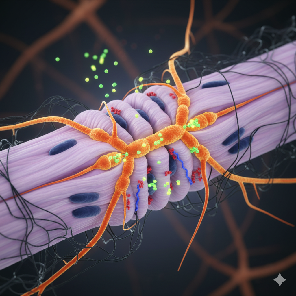 (i) Synaptic vesicles release acetylcholine into the cleft upon nerve impulse.