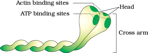 - The myosin head has sites for attachments with (i) The actin filament (ii) ATP molecules.
